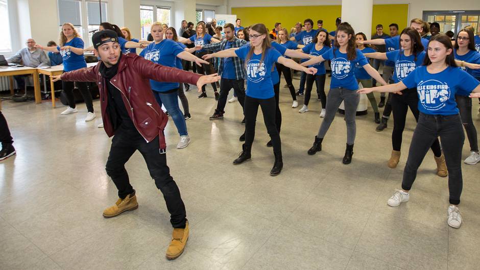 Die Berliner Tänzer waren heute als Botschafter des Jugendintegrationswettbewerbs „Alle Kids sind VIPs“ zu Gast im Freiherr-vom-Stein-Berufskolleg in Minden. Die Jugendlichen hatten den Besuch der prominenten Gäste mit ihrem Projekt „More Passion for Migration“ gewonnen. (Foto: janvoth.com)