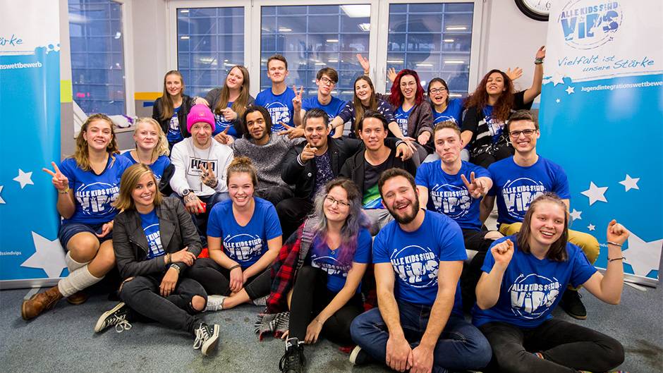 Die Berliner Musiker waren heute als Botschafter des Jugendintegrationswettbewerbs „Alle Kids sind VIPs“ zu Gast beim Verein „Schüler Helfen Leben“ in Neumünster. Die Jugendlichen hatten den Besuch der prominenten Gäste mit ihrem Projekt „Deutschlands Städte machen Lärm“ gewonnen. (Foto: janvoth.com)