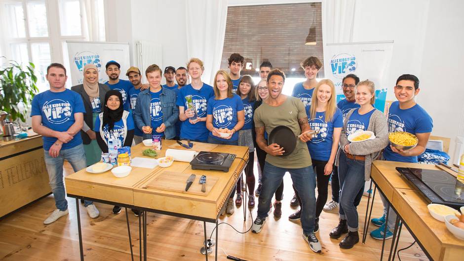 Der Moderator war heute als Botschafter des Jugendintegrationswettbewerbs „Alle Kids sind VIPs“ in der Berliner Roßbachstraße zu Gast. Die Jugendlichen hatten den prominenten Besuch mit ihrem Projekt „STF-Kocht!“ gewonnen. (Foto: janvoth.com)